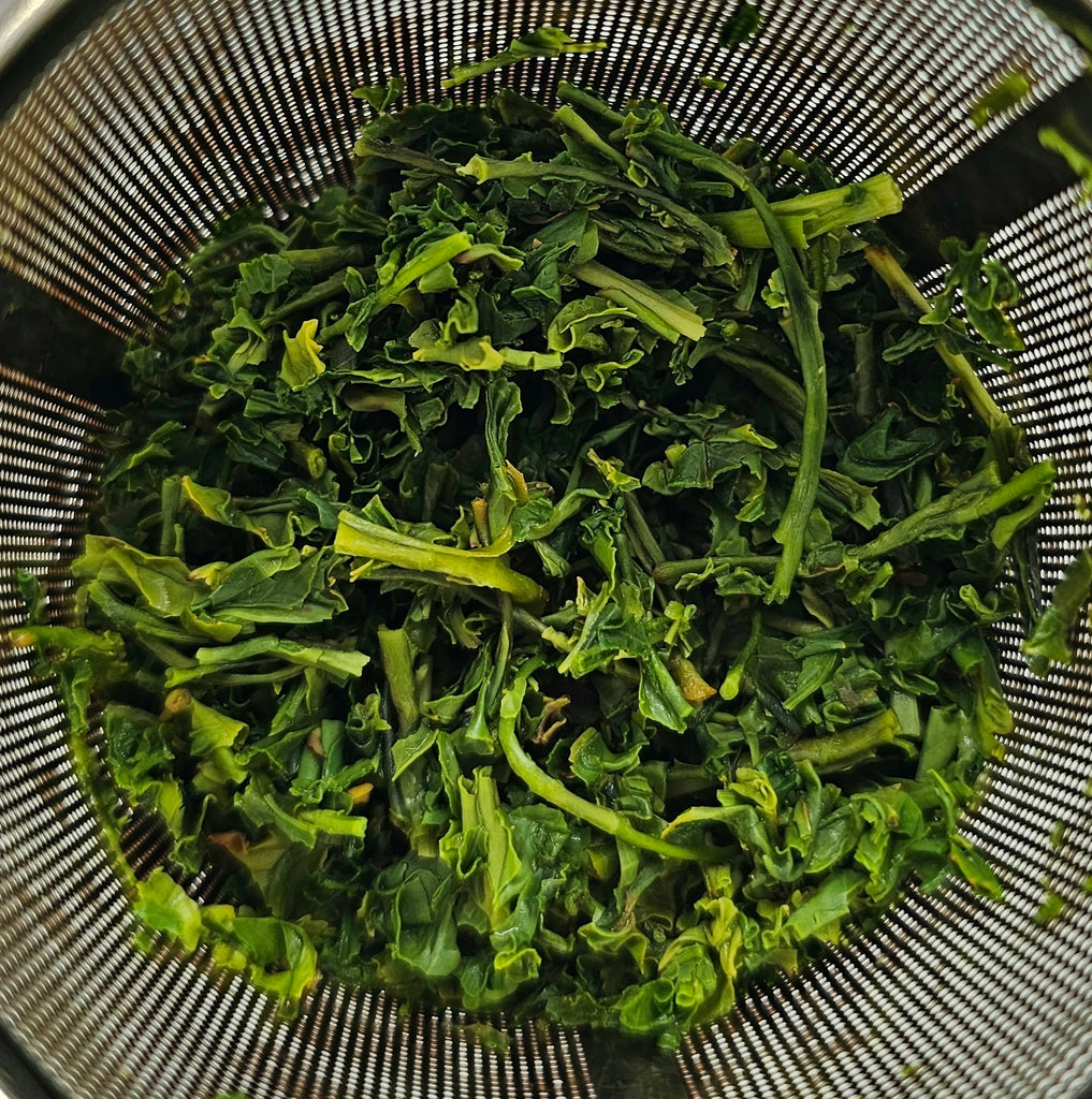 Sa liqueur verte-jaune typique d’un thé du style Chumushi offre une texture plus laiteuse et crémeuse par sa richesse, de notes d'umami, de végétales fraîches rappelant le rapini, d’amande et légèrement florale en finale. Un grand cru frais en bouche!